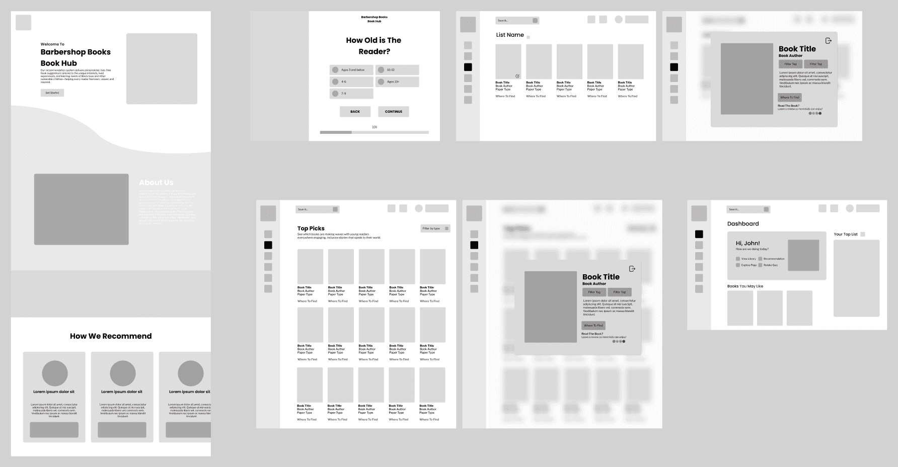 The prototype allows caregivers and educators to curate engaging book experiences, while providing Barbershop Books with a scalable tool to support their literacy mission. The client praised the design as both mission aligned and practical for implementation, making it a key asset in their ongoing community partnerships and fundraising efforts.